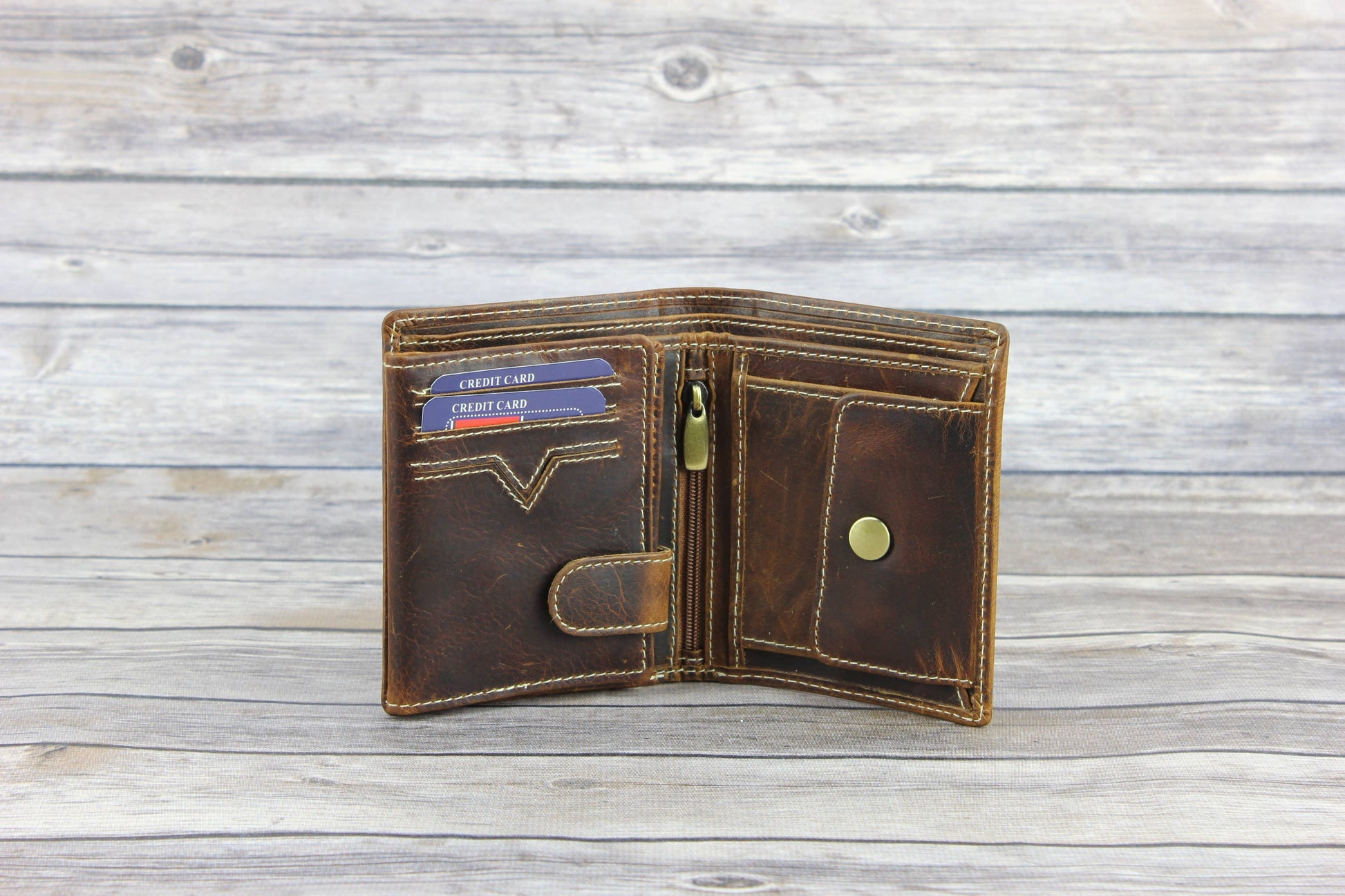 This just in! RFID euro hipster wallet. Made of cow oil pull up leather. Wallet has a snap closure to keep your credit cards secure. This unique wallet has a snap coin pocket and zipper compartment. Wallet has multiple credit card slots and has two money compartments.